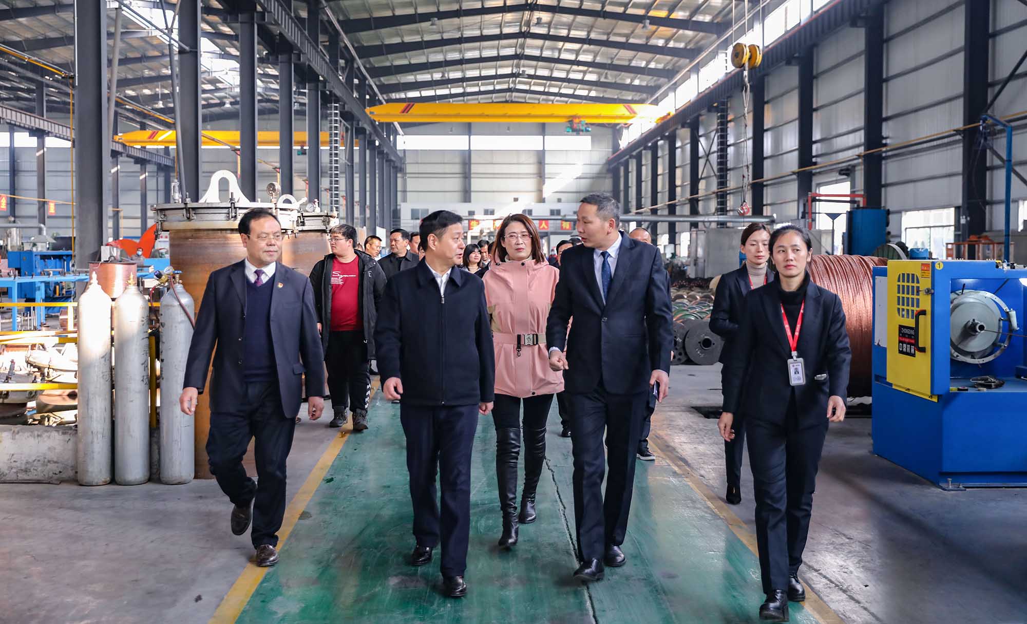 2021年1月4日下午,永州市委書記嚴華帶領部分在永的省人大代表來到來到永州市經開區調研營商環境工作,深入湖南三湘電線電纜等企業參觀視察。永州市經開區黨委書記高守凱,永州市經開區管委會主任李瑛等參加調研,湖南三湘電纜董事長申旺等公司領導陪同調研并介紹相關情況。