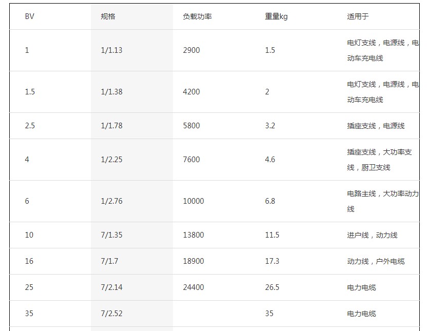 BV是由一根或者幾十根粗銅絲構成的導體,整體偏硬,適合使用在主線或者支線。